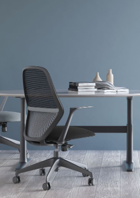- Base: Estrella pentagonal de 5 puntas fabricada en poliamida con un diámetro de 660 mm (26") nervada, en color negro. Incluye rodajas intercambiables dobles de 60 mm de diámetro fabricadas en nylon al 100%, con giro de 360°, perno eje de acero y una vida útil de 250,000 ciclos continuos. La base soporta un límite de carga de seguridad de entre 830 y 860 kg.