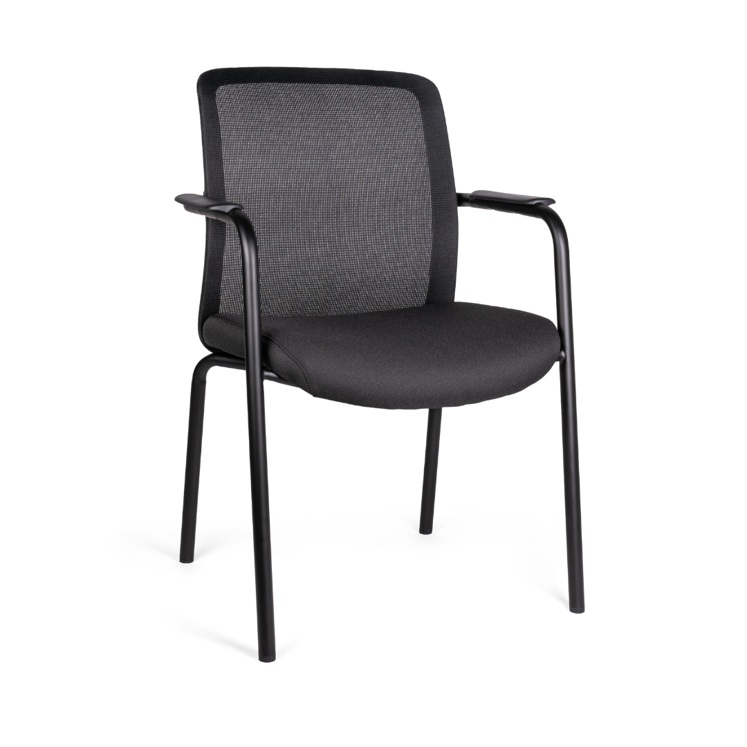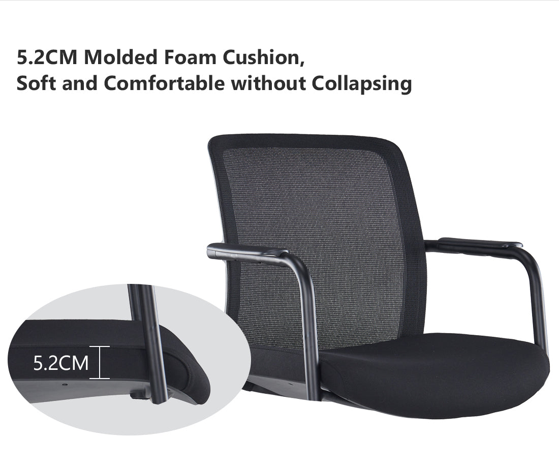 - Diseño: Ergonómico con respaldo de bastidor de polipropileno de alta densidad y malla en color negro. El asiento tiene un interior de madera de triplay preformado de 8 mm y acojinado de espuma de poliuretano inyectado de 50 mm de espesor (densidad ) de alta resiliencia. Incluye brazos fijos con pad de polipropileno rígido de alta densidad.
