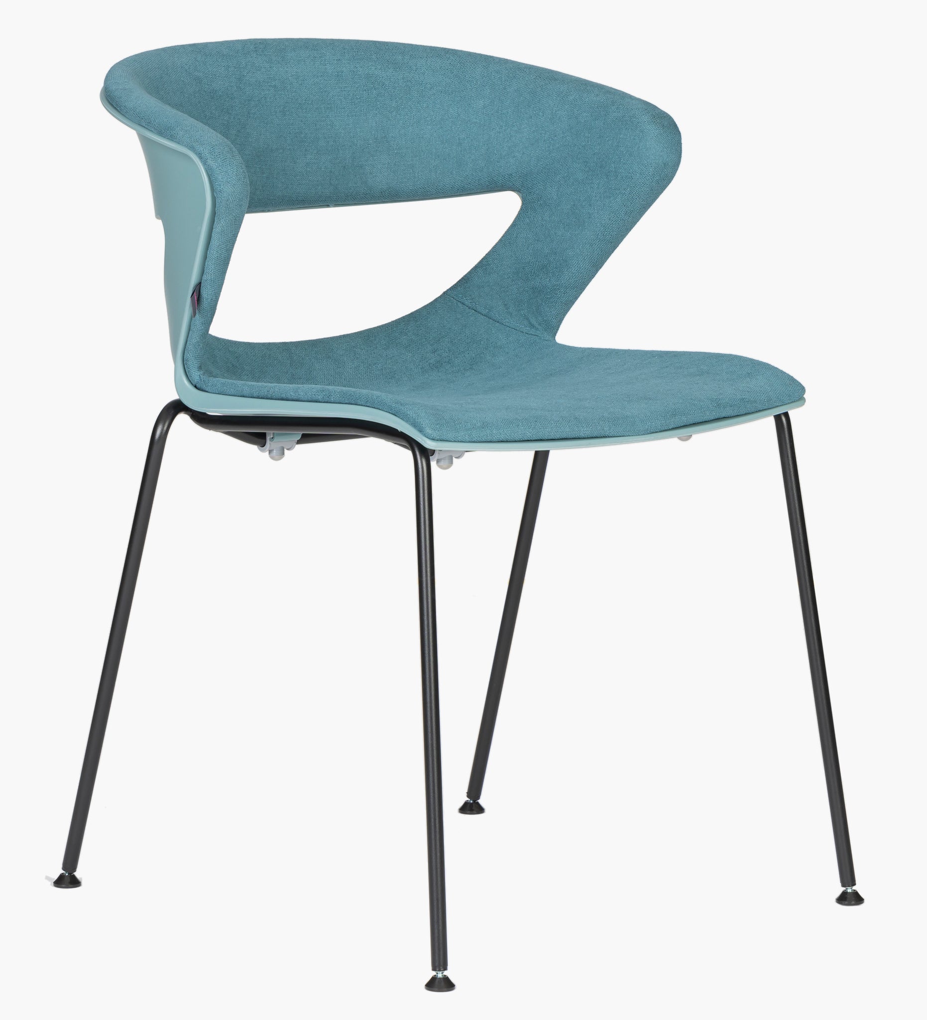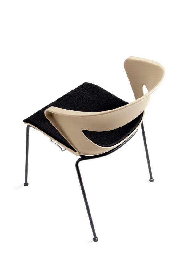 Cuerpo de polipropileno inyectado. Base de metal negro de 4 puntas. Colores disponibles de concha: Crema, Turquesa, Gris, Negro, Arena.