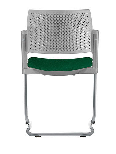 Asiento y respaldo hule espuma de poliuretano inyectado flexible con densidad de 60 kgs/m3 con retardante a la flama y alta resilencia y estructura tipo trineode acero tubular de 7/8" de diámetro, calibre 14; con acabado en pintura epóxica (electrostática) color negro mate o gris.