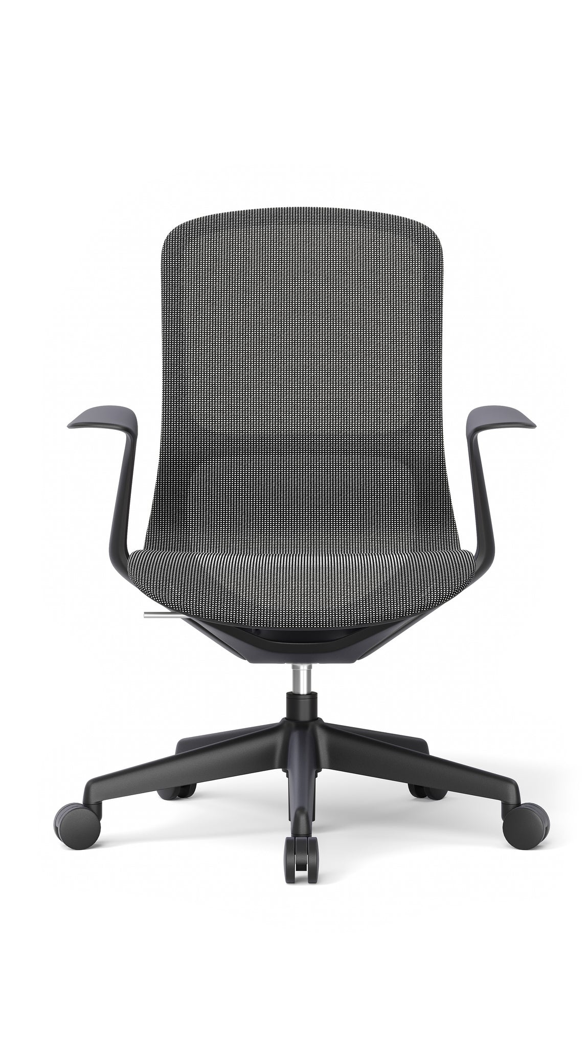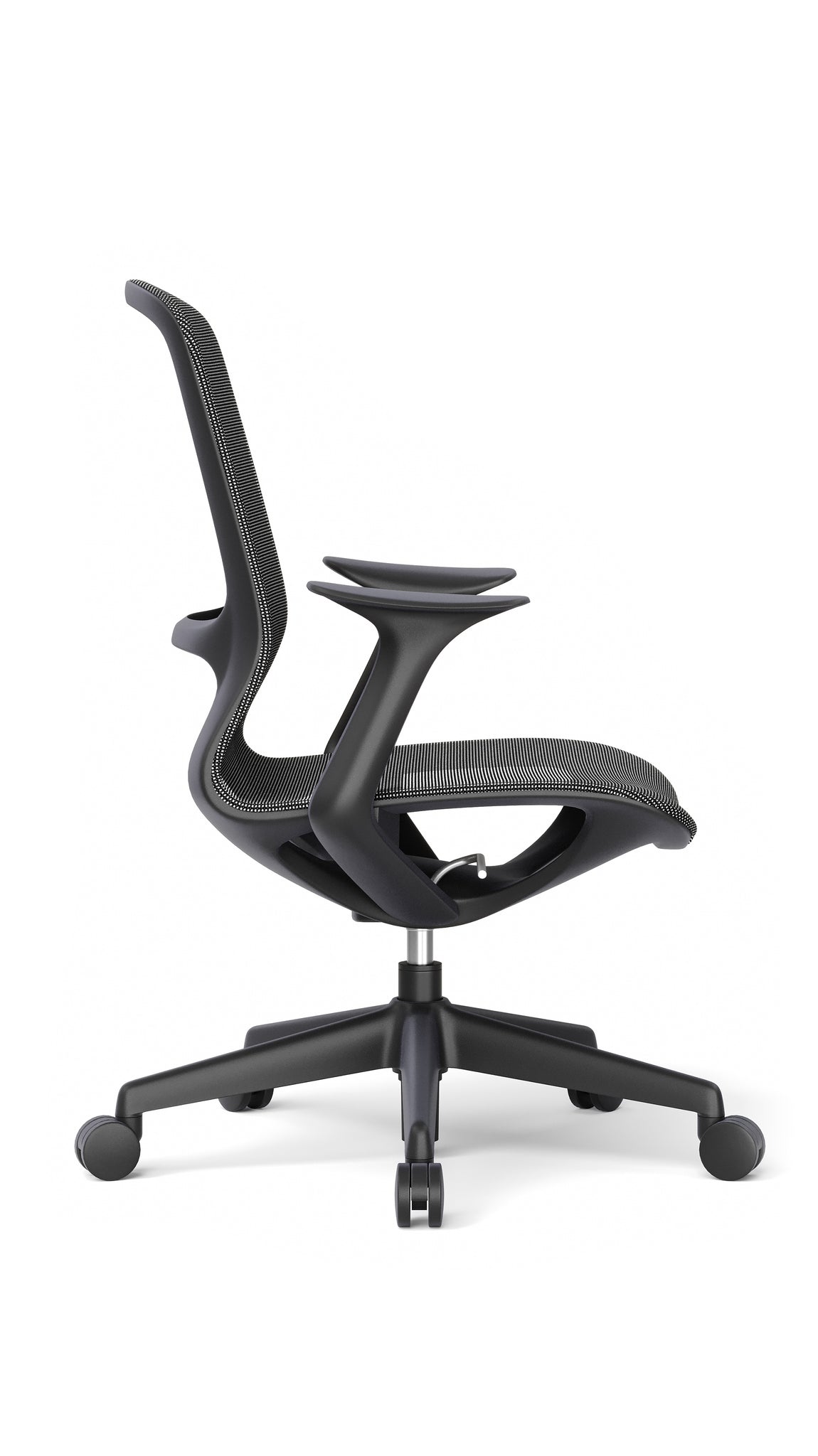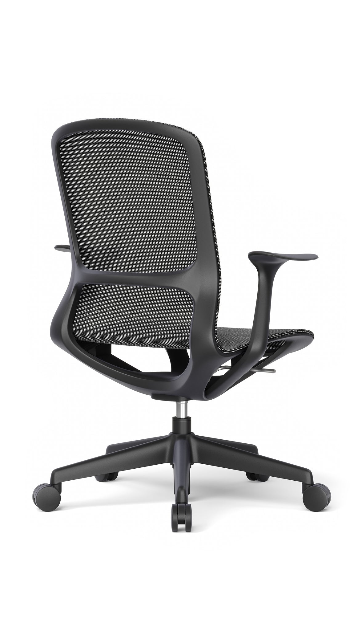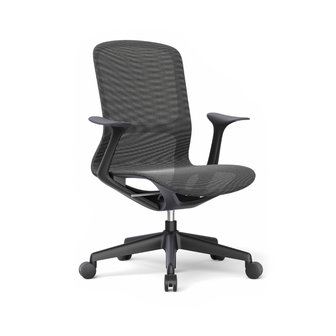 - Diseño: Ergonómico de respaldo medio con bastidor de polipropileno de alta resistencia. Tanto el asiento como el respaldo están confeccionados en malla de elastano en color negro, lo que garantiza una óptima transpiración. Incluye brazos fijos de polipropileno de alta densidad en color negro, los cuales se ensamblan mediante un sistema de encaje (interlocking joint) y se fijan con 4 tornillos directamente al asiento.