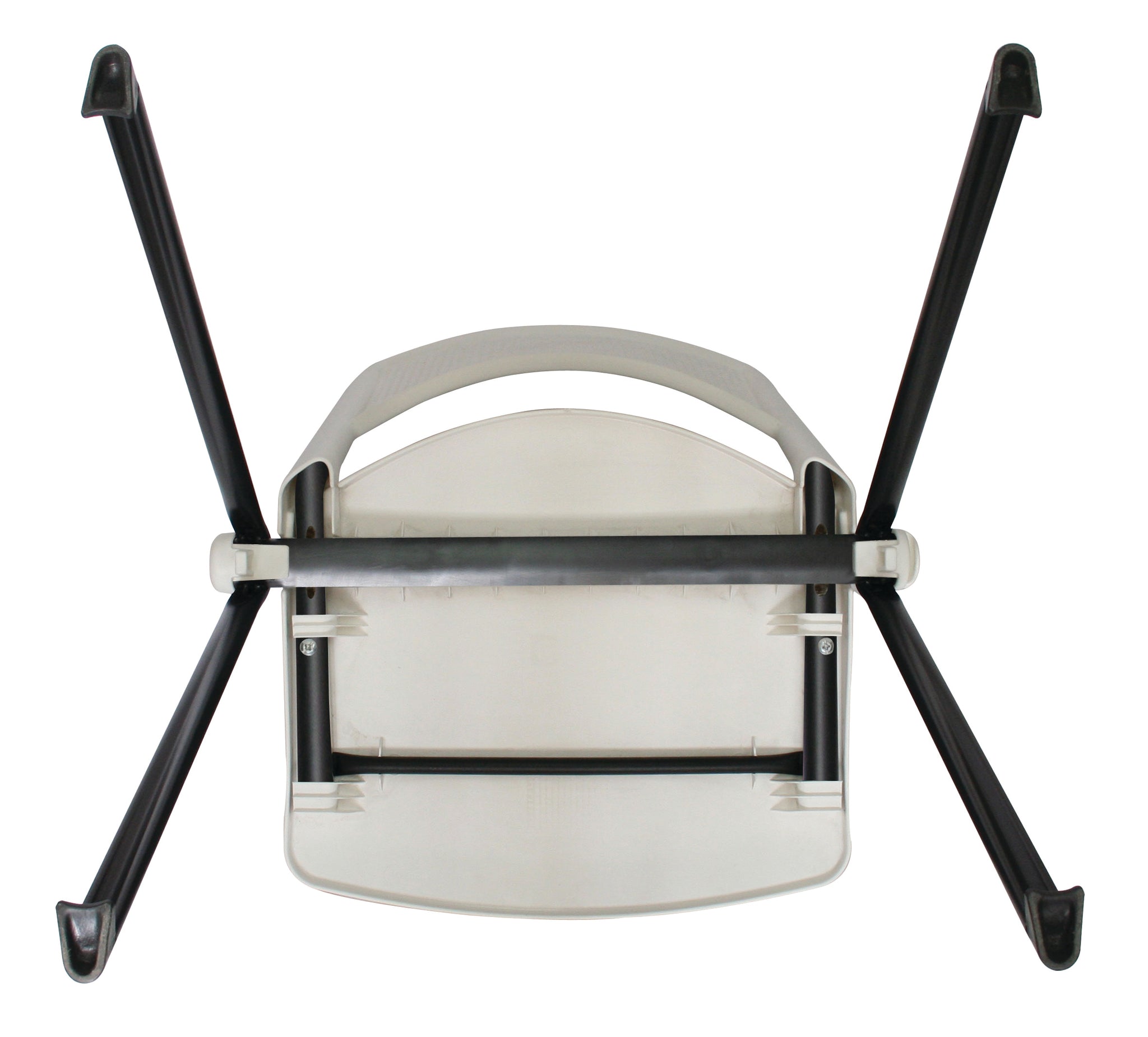 - Base: Estructura fija de alta resistencia fabricada en perfil redondo tubular de acero de 1" de diámetro (calibre 16), troquelado. Incluye soportes de asiento en perfil ovalado tubular de 40 x 20 mm (calibre 16) y perfil redondo de 5/8" (calibre 18). Cuenta con regatones de polipropileno de alta densidad tipo cuña internos en color negro.