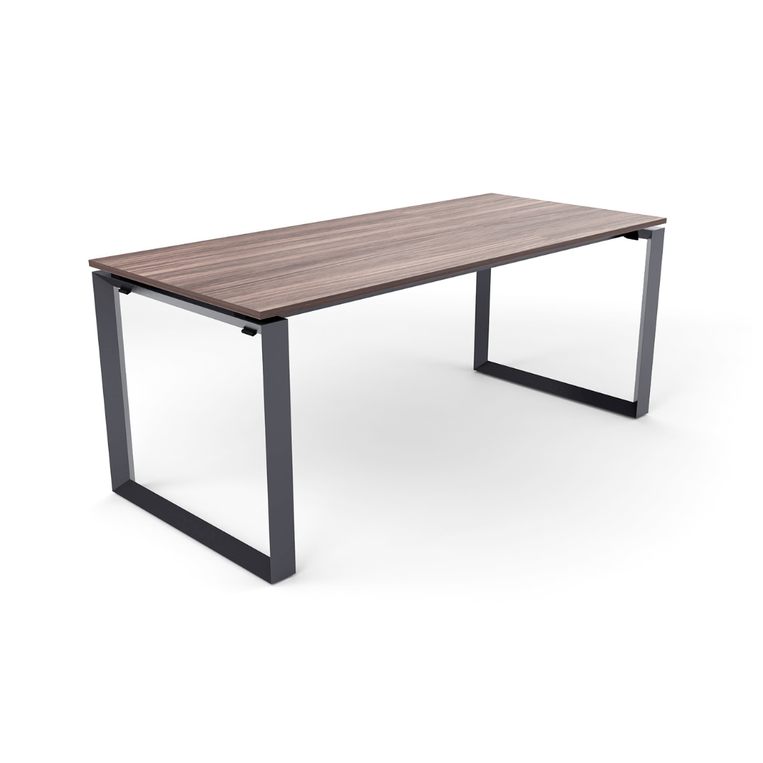 Escritorio sencillo de estructura metálica y cubierta de melamina. Estructura en color blanco o grafito.